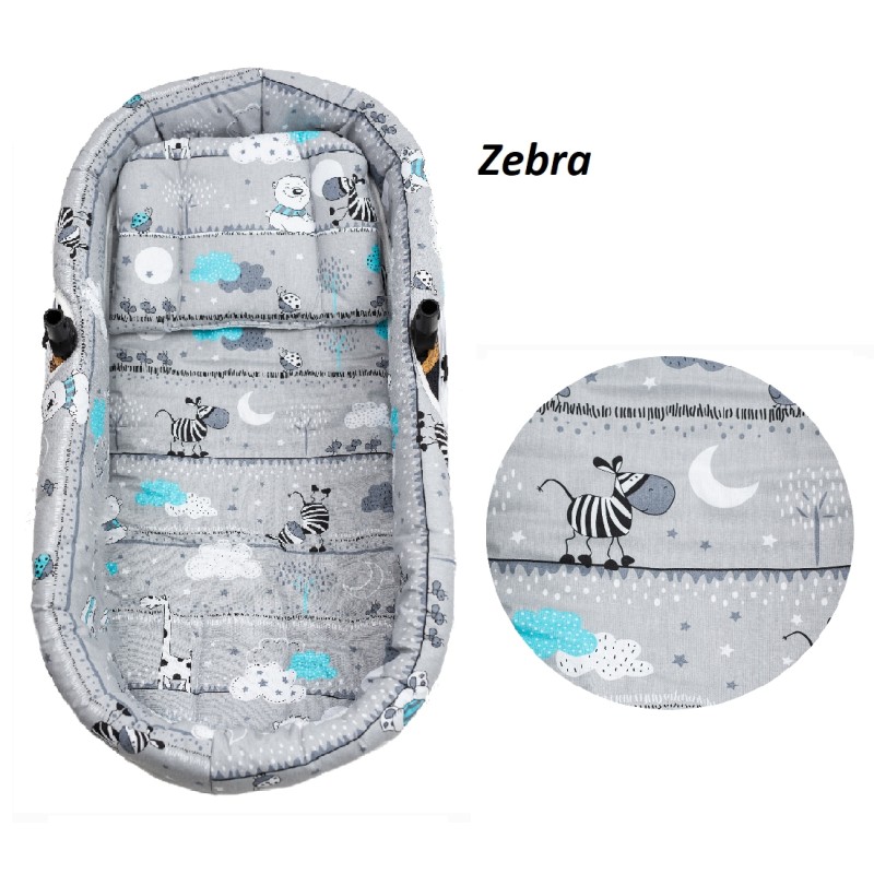• Wykładka jest wypełniona antyalergiczną owatą o gramaturze 150 g/m2 co sprawia że jest miękka , ciepła i miła w dotyku, natomiast materac warstwą pianki o grubości 0,8 mm i warstwą ocieplacza o gramaturze 150 g/m2 co daje razem grubą i  i mięciutką warstwę izolującą dziecko od dna gondoli wózka .