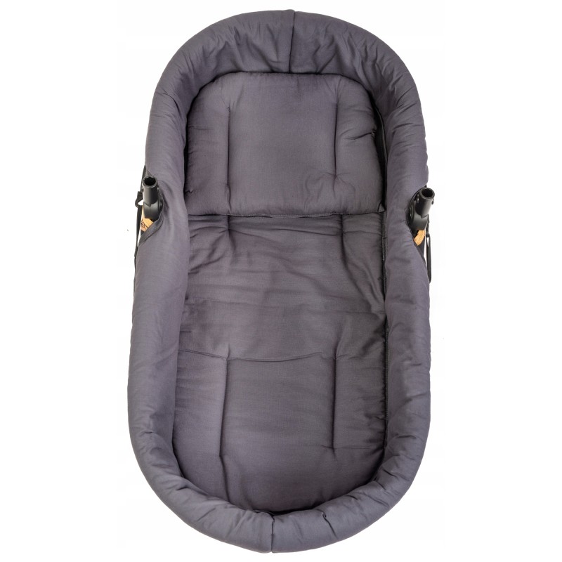 Wykładka jest wypełniona ocieplaczem o gramaturze 150 g/m2 co sprawia że jest miękka , ciepła i miła w dotyku,natomiast materac warstwą pianki o grubości 10 mm i warstwą ocieplacza o gramaturze 200 g/m2 co daje razem grubą i i mięciutką warstwę izolującą dziecko od dna gondoli wózka .