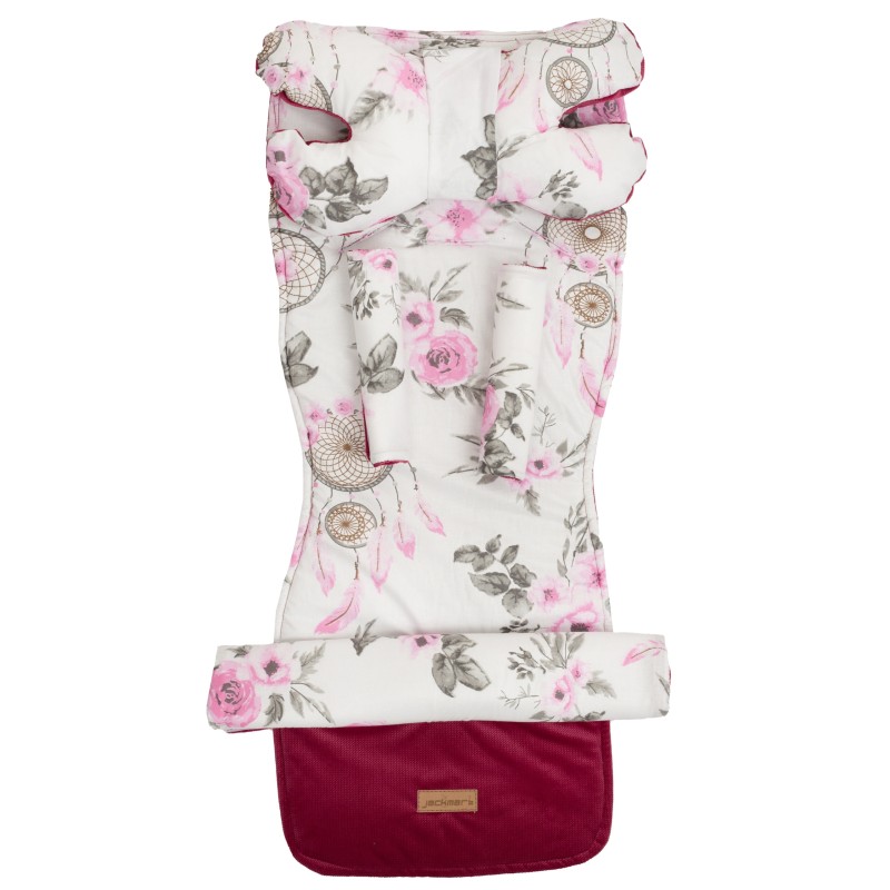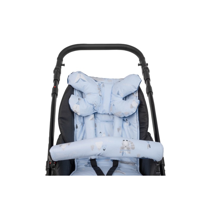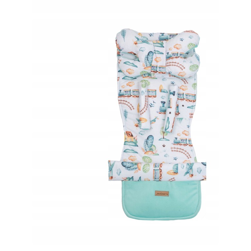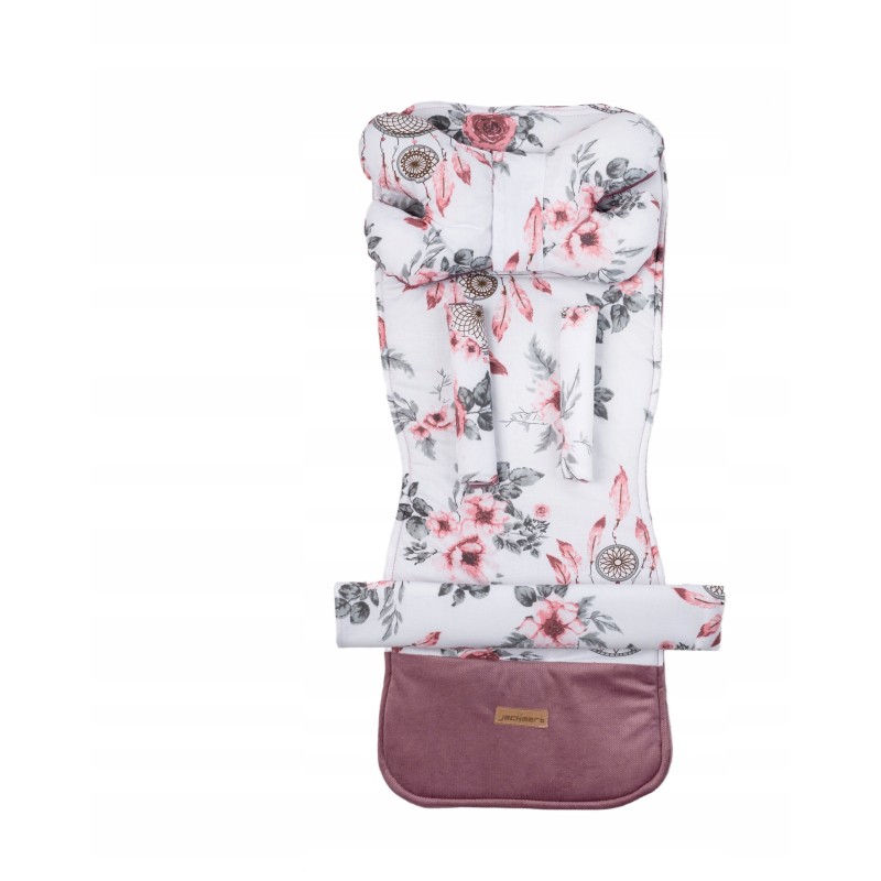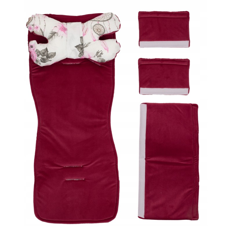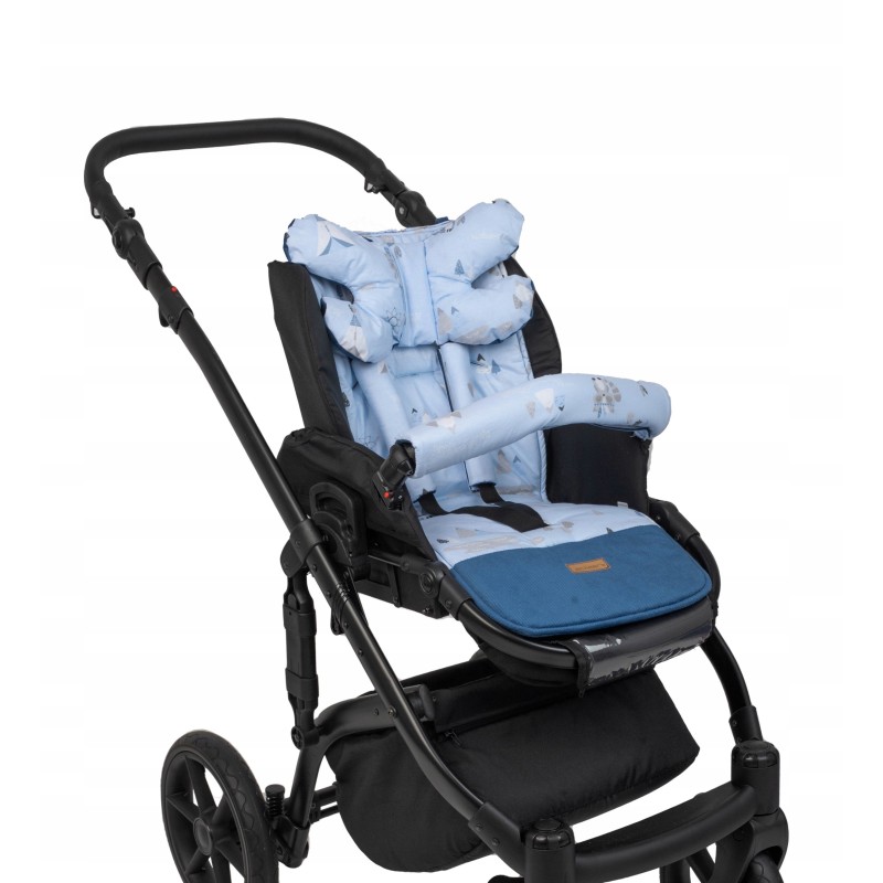 Wkładka posiada 6 otworów na pasy bezpieczeństwa, oraz dwa otwory na zamocowanie poduszki motylka. Wkładki są uniwersalne testowane na wielu wózkach dziecięcych dostępnych na rynku.