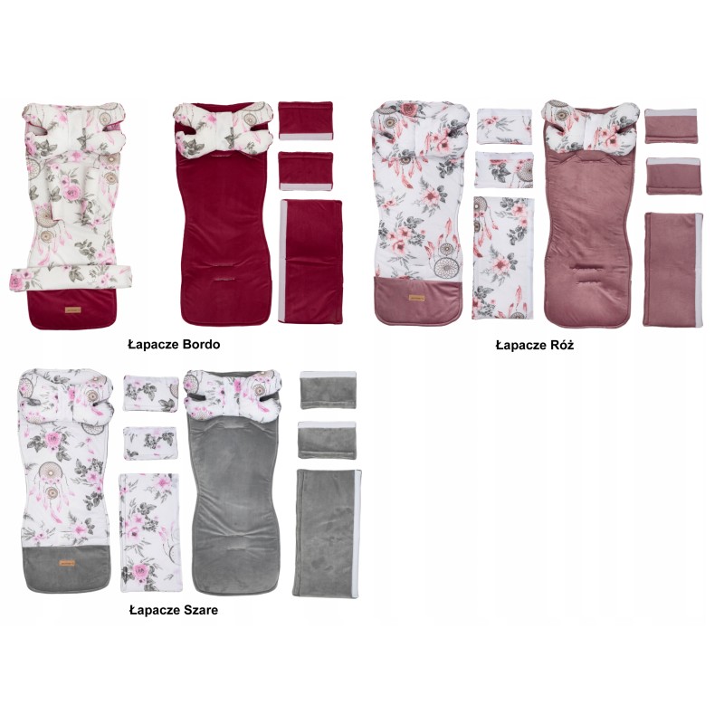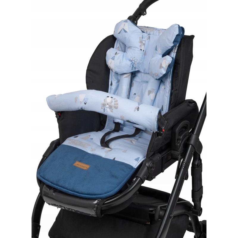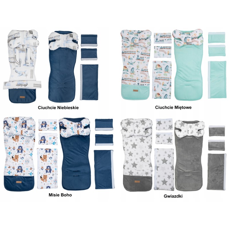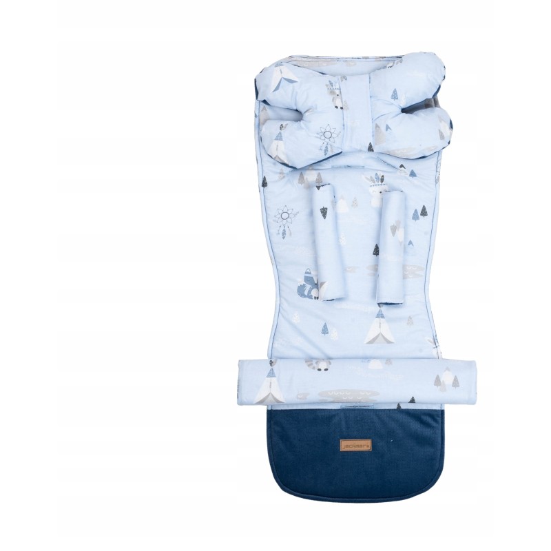 Dwustronna wkładka do wózka spacerowego wykonana z BAWEŁNY 100% w różnych wzorach i kolorach, z drugiej strony połączona z aksamitnym VELVETEM LUB MINKI alternatywa na chłodniejsze dni. W środku wypełniona mięciutkim ocieplaczem, można używać ją obustronnie.