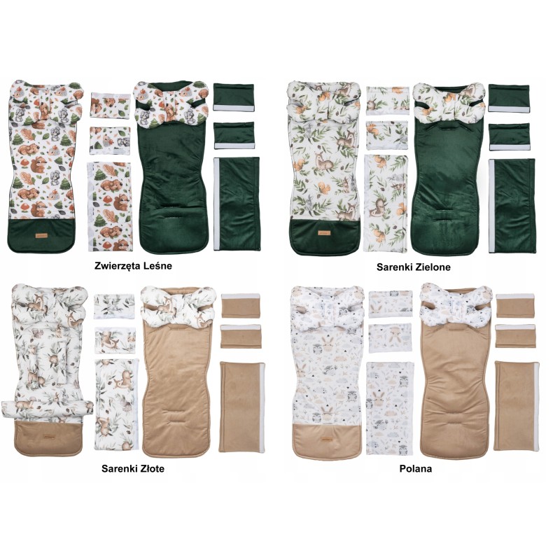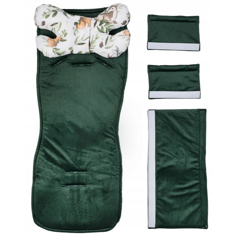 Dwustronna wkładka do wózka spacerowego wykonana z BAWEŁNY 100% w różnych wzorach i kolorach, z drugiej strony połączona z aksamitnym VELVETEM LUB MINKI alternatywa na chłodniejsze dni. W środku wypełniona mięciutkim ocieplaczem, można używać ją obustronnie.