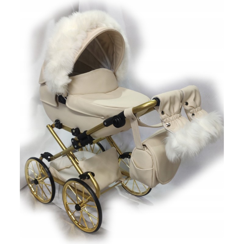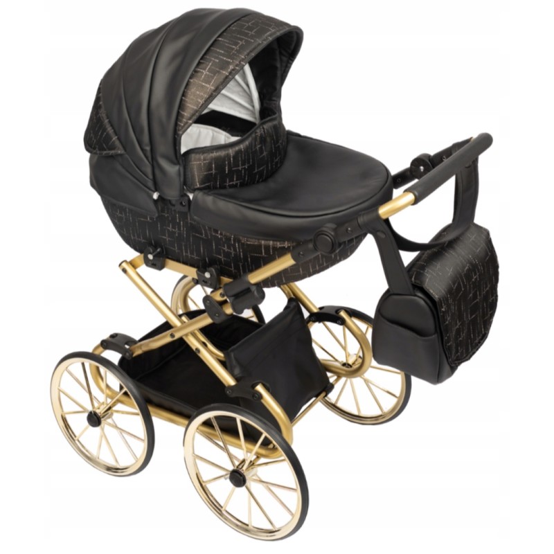 Przedstawiamy Państwu: Duży wózek głęboki Retro dla lalek Darsi czarny na złotym stelażu, który został wyprodukowany w naszej firmie z najwyższej jakości bezpiecznych materiałów z niezwykłą starannością.