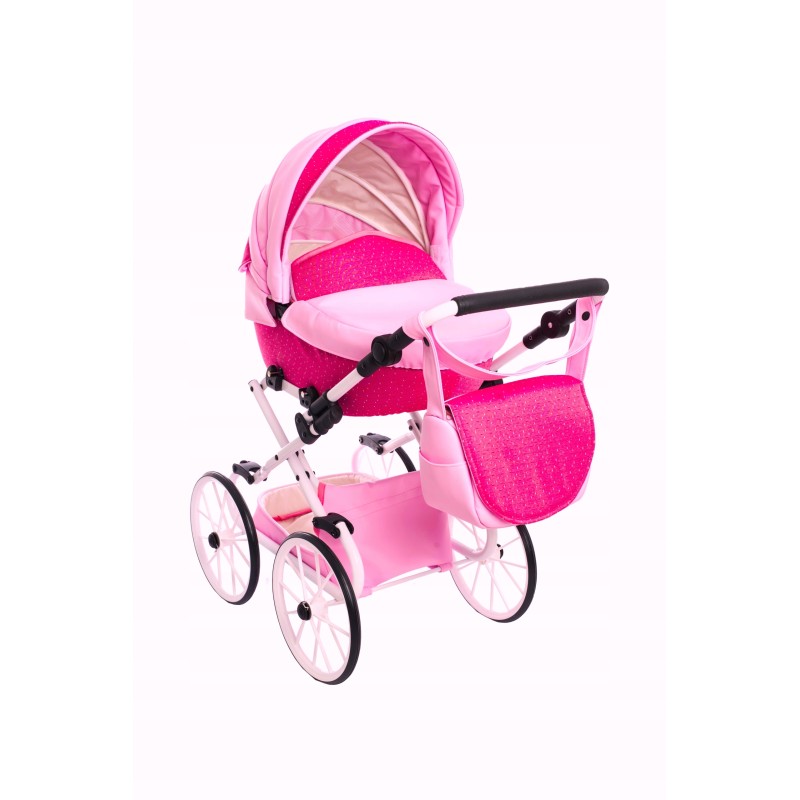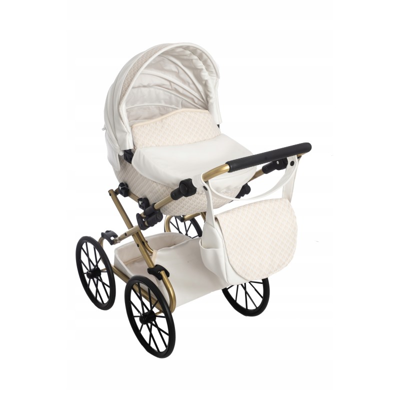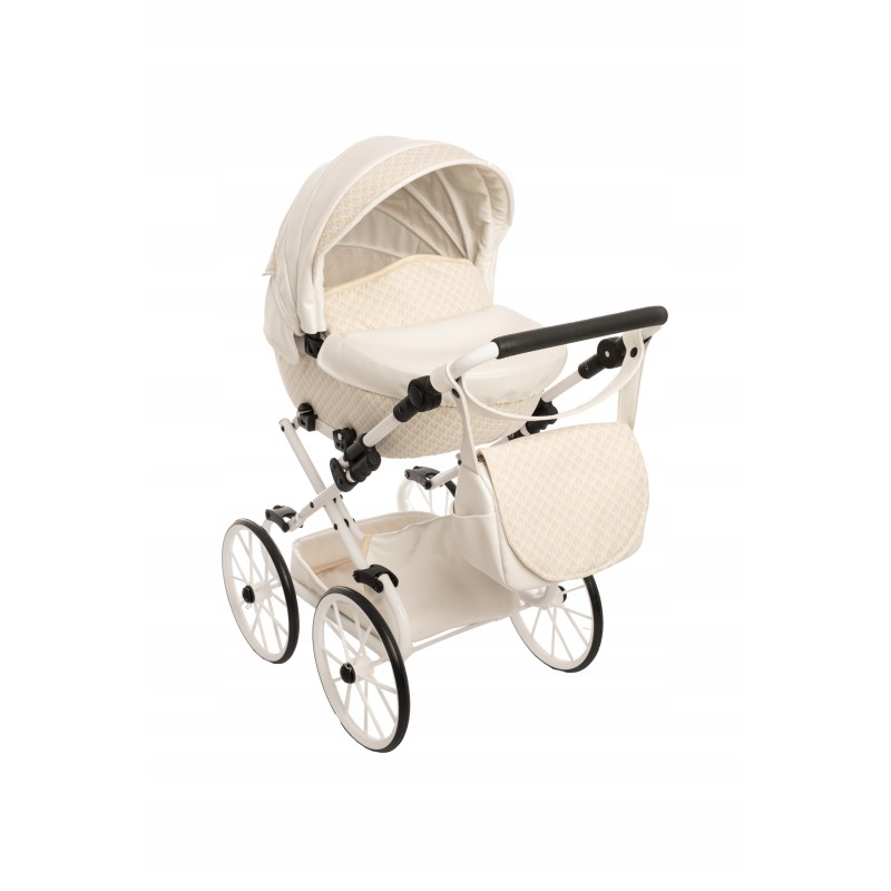 Przedstawiamy Państwu: Duży wózek głęboki Retro dla lalek Darsi na białym stelażu, który został wyprodukowany w naszej firmie z najwyższej jakości bezpiecznych materiałów z niezwykłą starannością.