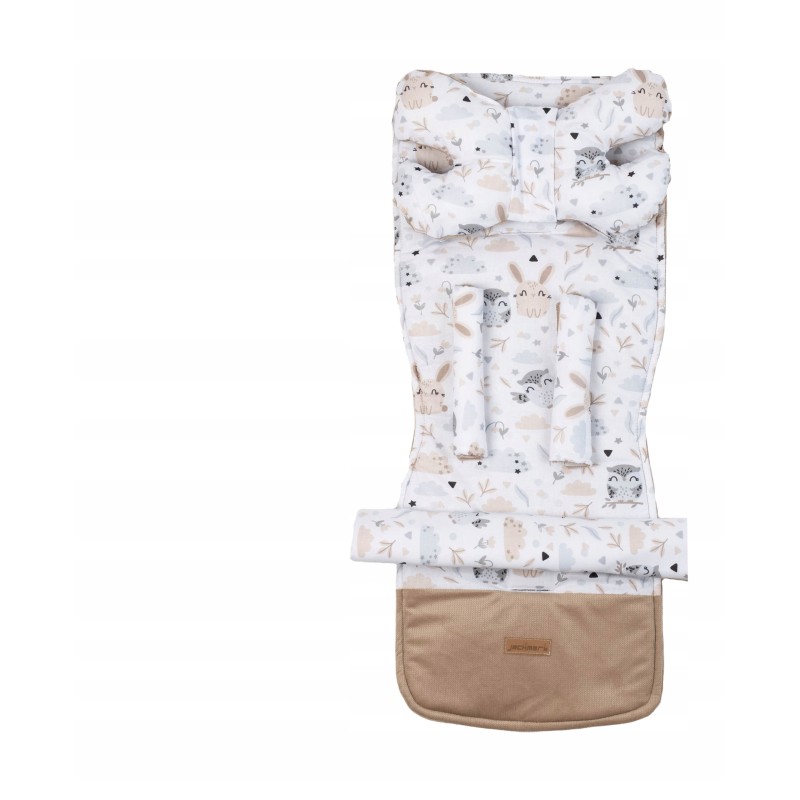 Wkładka posiada 6 otworów na pasy bezpieczeństwa, oraz dwa otwory na zamocowanie poduszki motylka. Wkładki są uniwersalne testowane na wielu wózkach dziecięcych dostępnych na rynku.