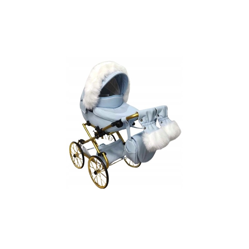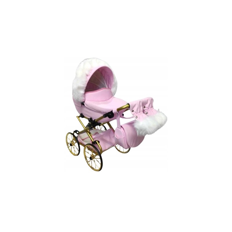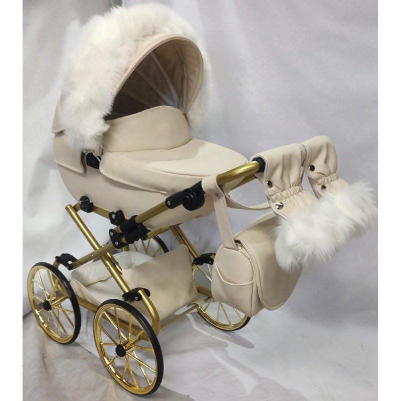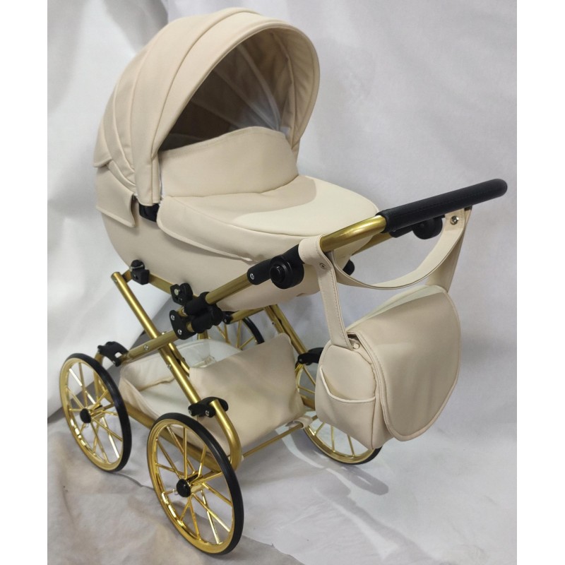 Przedstawiamy Państwu: Duży wózek głęboki Retro dla lalek Darsi na złotym stelażu, który został wyprodukowany w naszej firmie z najwyższej jakości bezpiecznych materiałów z niezwykłą starannością.