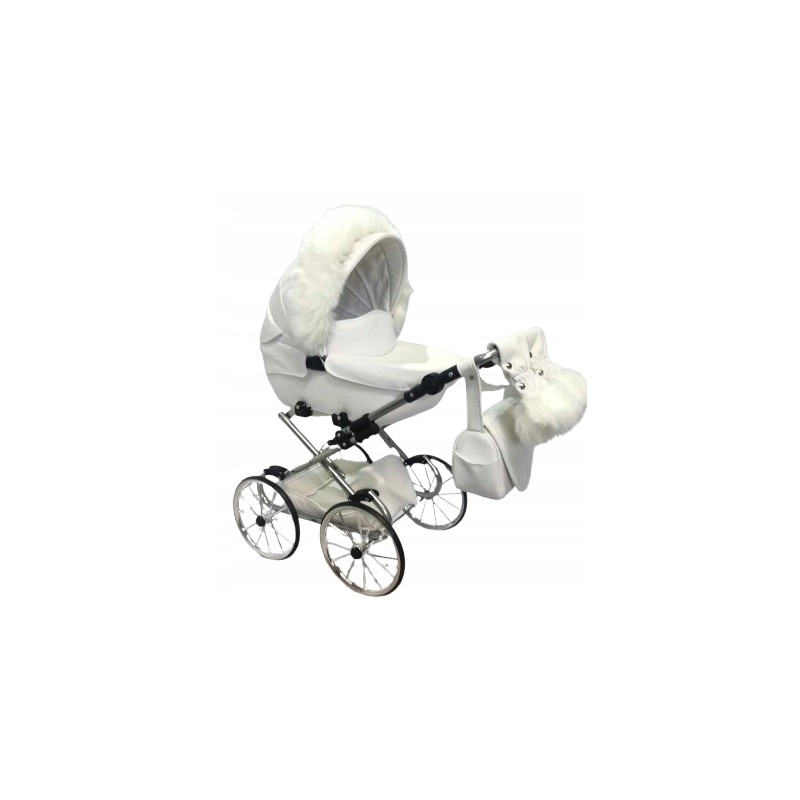 Przedstawiamy Państwu: Duży wózek głęboki Retro dla lalek Darsi na srebrnym stelażu, który został wyprodukowany w naszej firmie z najwyższej jakości bezpiecznych materiałów z niezwykłą starannością.