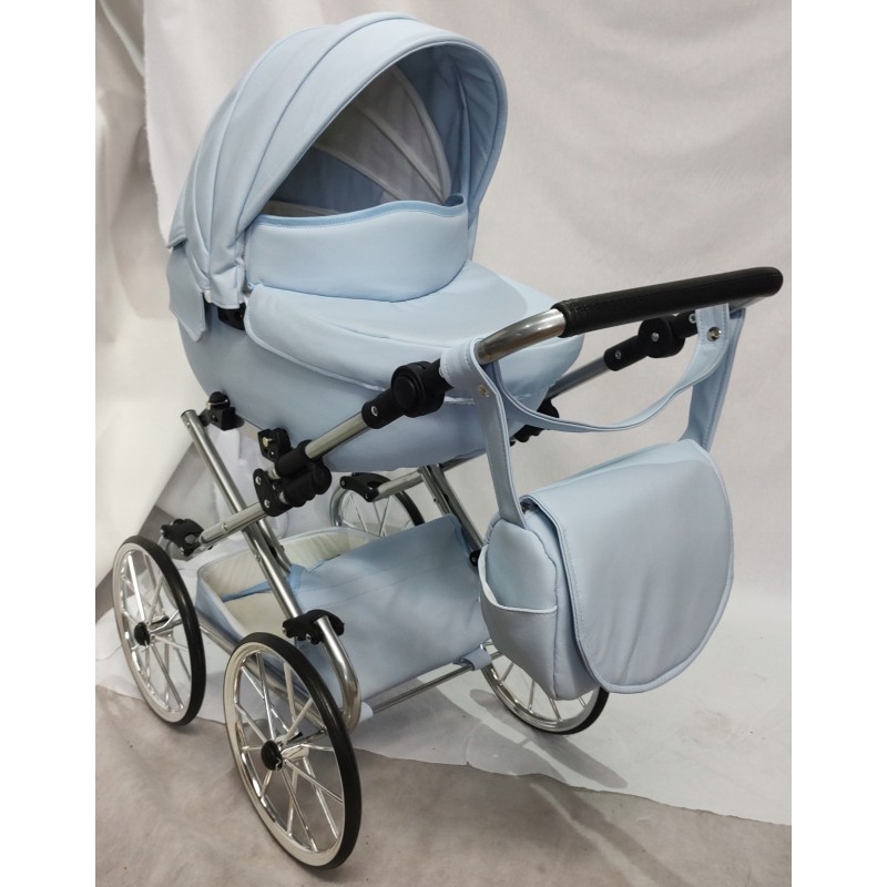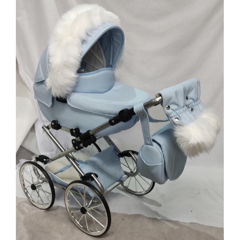 Przedstawiamy Państwu: Duży wózek głęboki Retro dla lalek Darsi na srebrnym stelażu, który został wyprodukowany w naszej firmie z najwyższej jakości bezpiecznych materiałów z niezwykłą starannością.