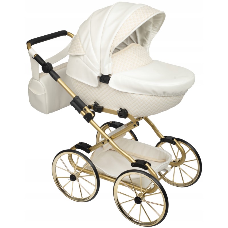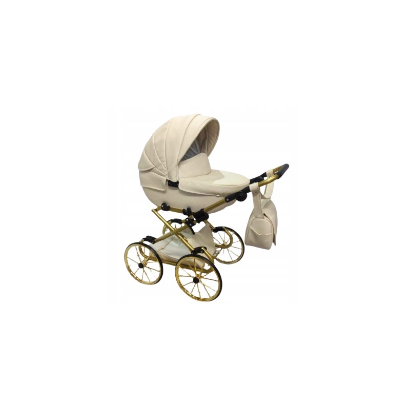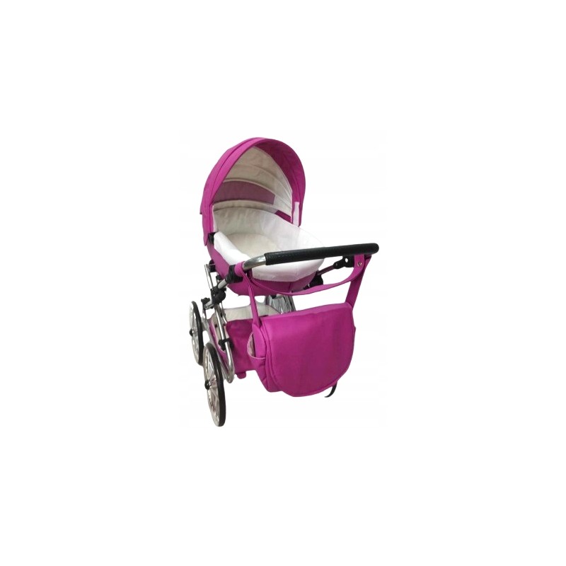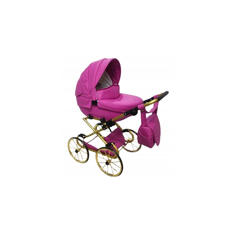 Przedstawiamy Państwu: Duży wózek głęboki Retro dla lalek Darsi na złotym stelażu w kolorze ciemny róż z futerkiem na budkę i rękawiczkami dla dziewczynki, który został wyprodukowany w naszej firmie z najwyższej jakości bezpiecznych materiałów z niezwykłą starannością.