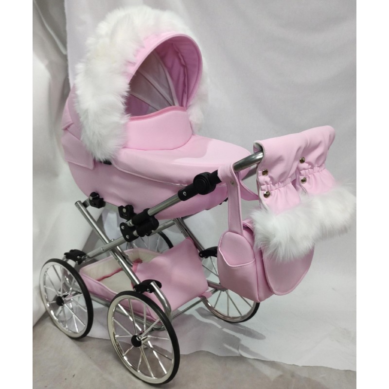 Przedstawiamy Państwu: Duży wózek głęboki Retro dla lalek Darsi na srebrnym stelażu, który został wyprodukowany w naszej firmie z najwyższej jakości bezpiecznych materiałów z niezwykłą starannością.