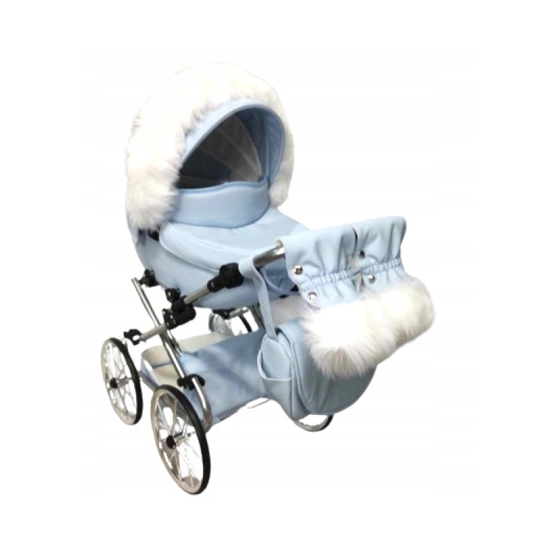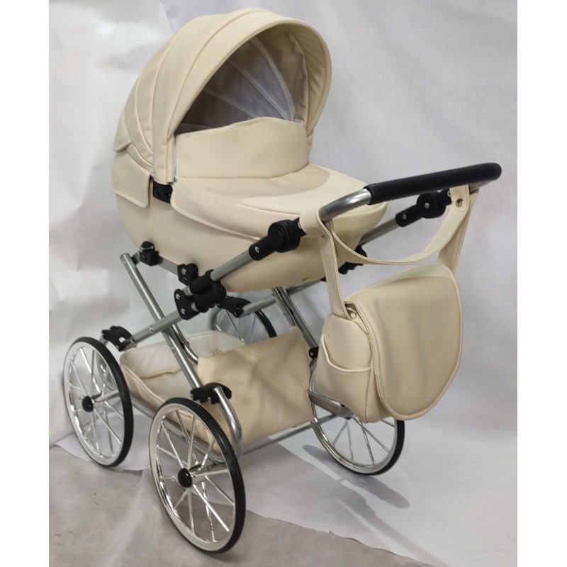 Przedstawiamy Państwu: Duży wózek głęboki Retro dla lalek Darsi na srebrnym stelażu, który został wyprodukowany w naszej firmie z najwyższej jakości bezpiecznych materiałów z niezwykłą starannością.