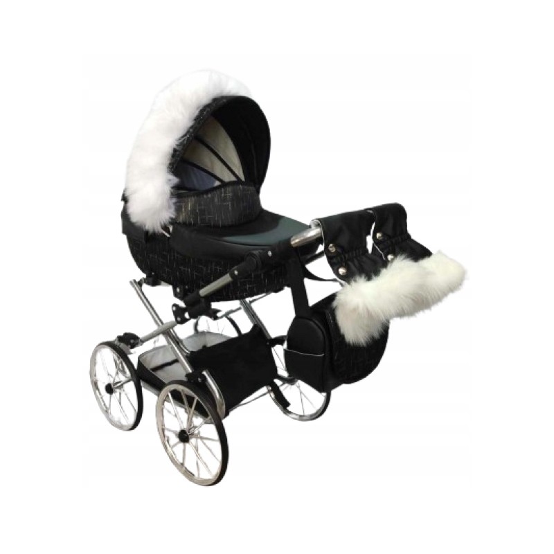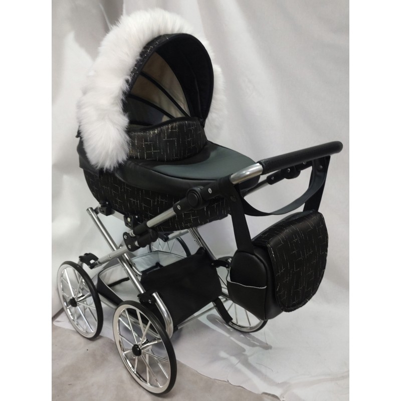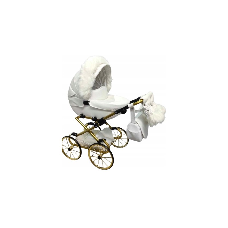 Przedstawiamy Państwu: Wózek dla lalek głęboki Darsi na kołach retro i złotym stelażu.