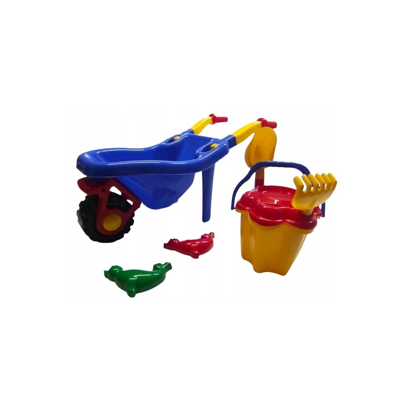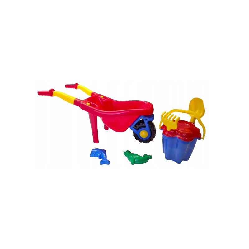Taczka plastikowa dla dzieci duża z wiaderkiem łopatką i foremkami Hemar