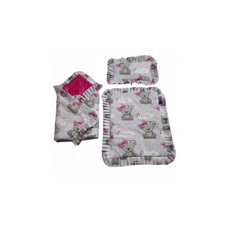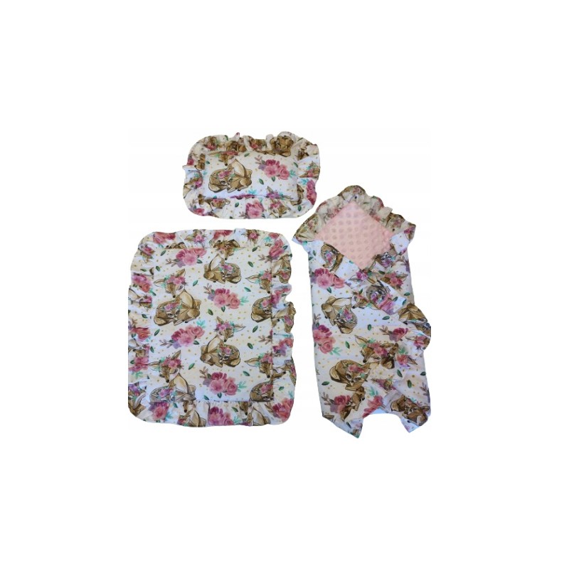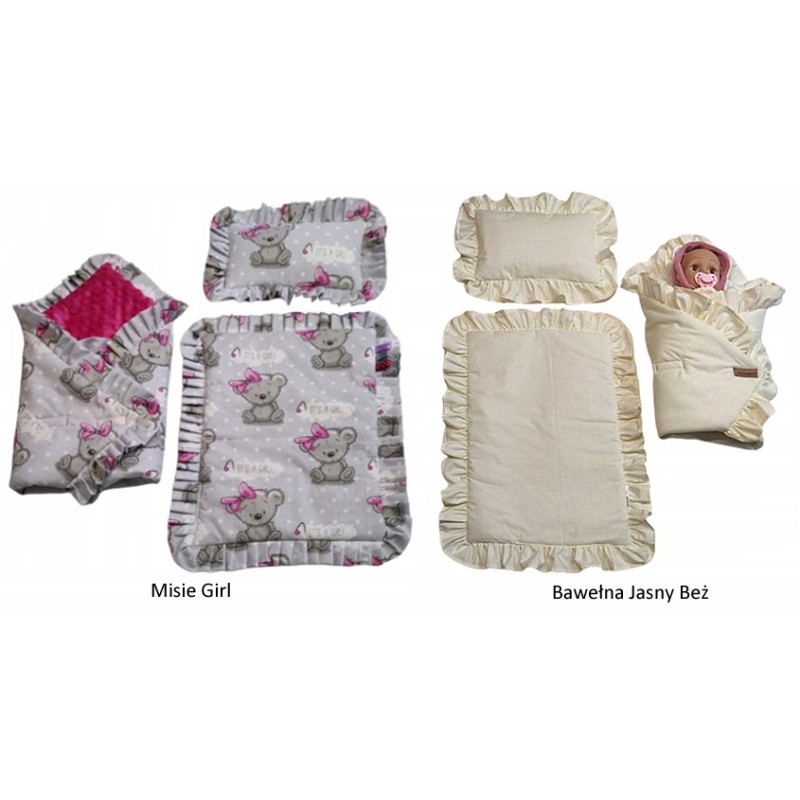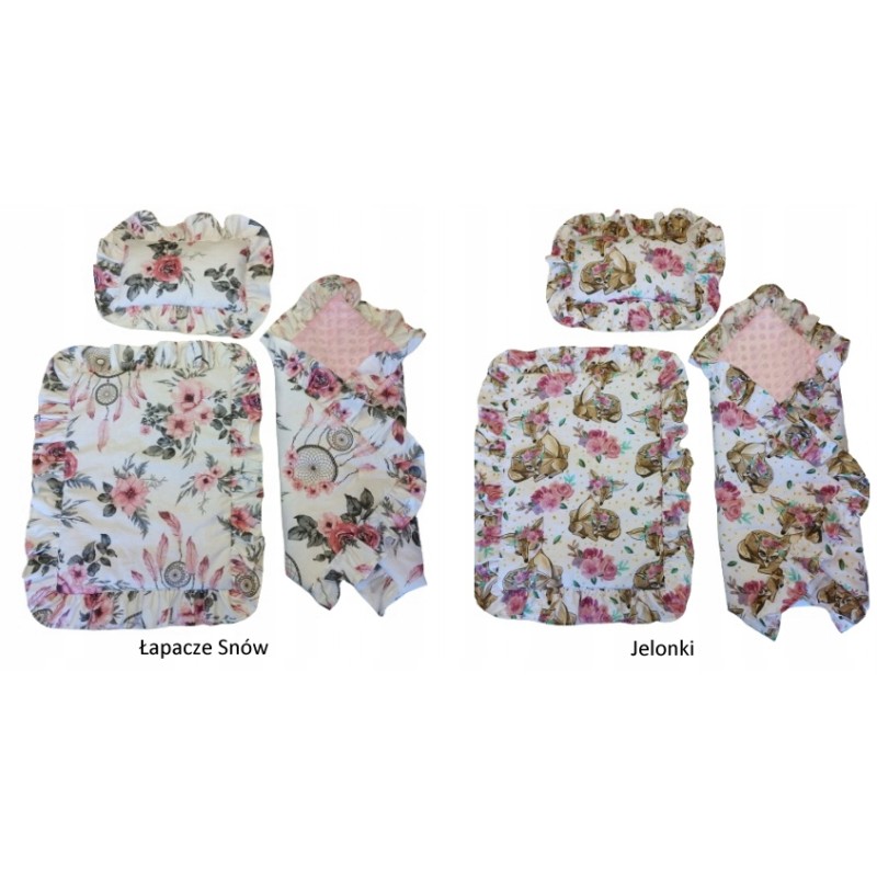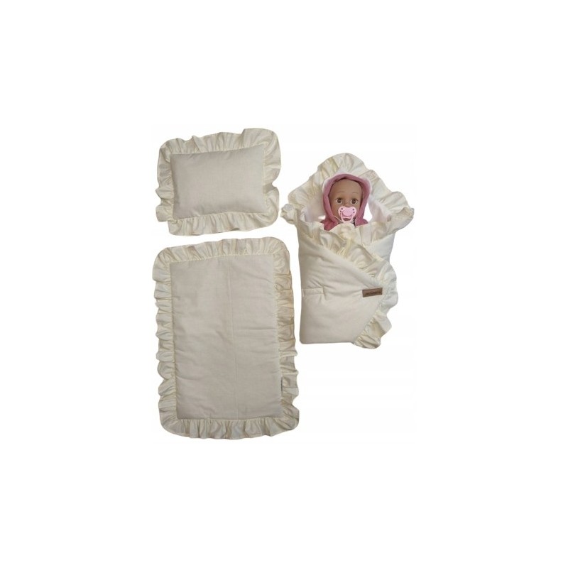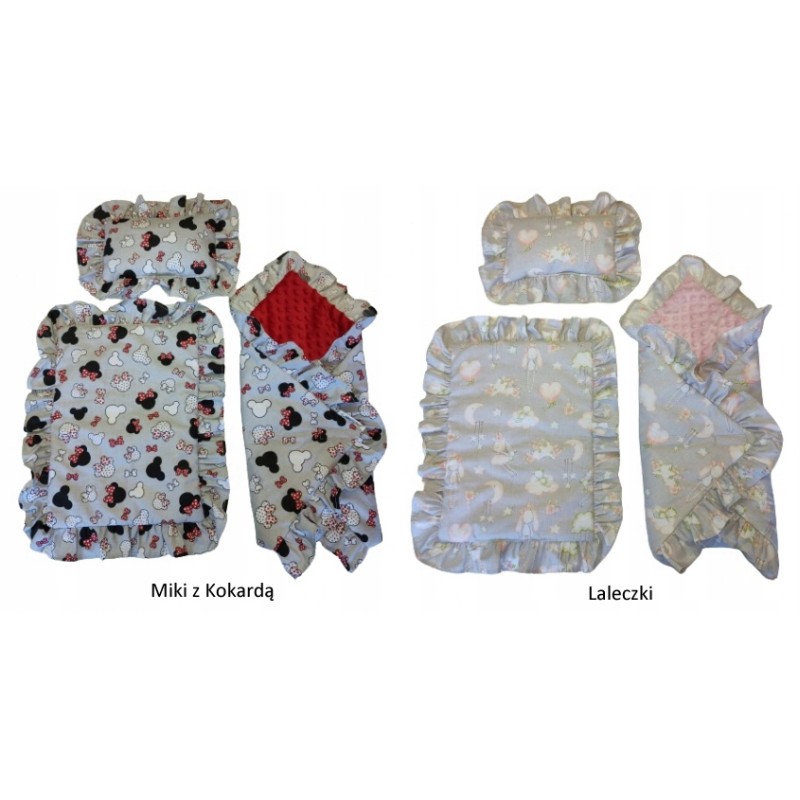 ✅ Z kołderki, poduszeczki i rożka z uroczymi falbankami.