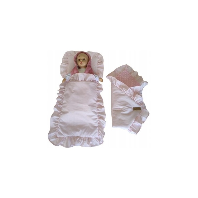 Przedstawiamy Państwu komplet pościeli dla lalki ozdobioną piękną falbanką, który został uszyty przez nas z najwyższej jakości bezpiecznych materiałów z niezwykłą starannością.