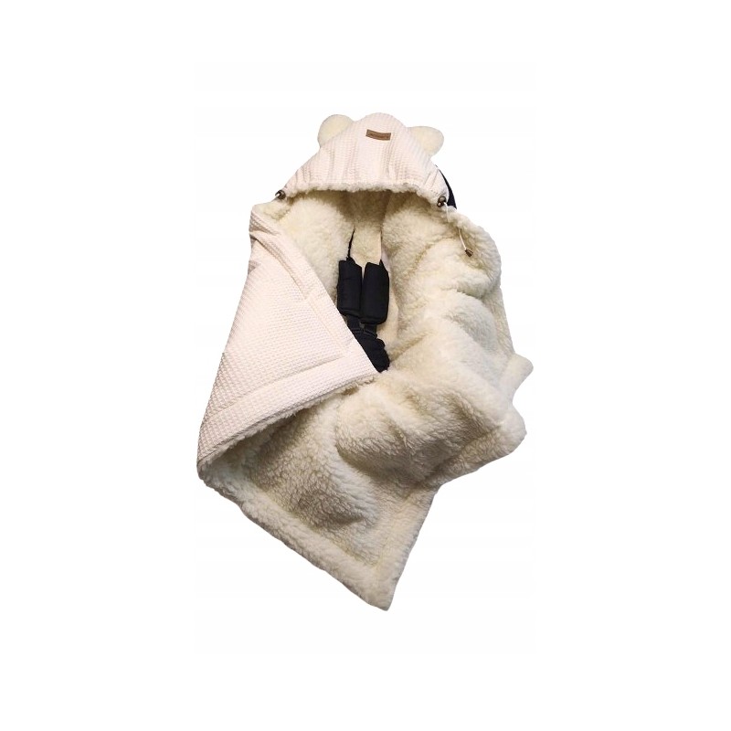 OTULACZ KOCYK Z KAPTURKIEM DO FOTELIKA NOSIDEŁKA WÓZKA Z OWCZEJ WEŁNY