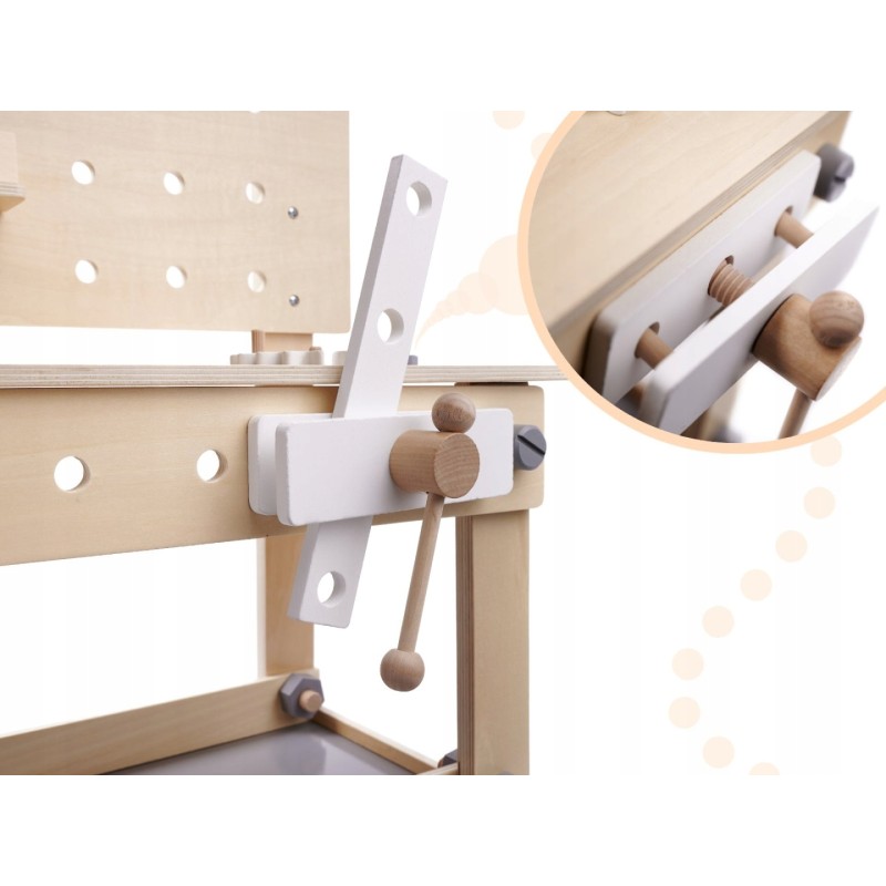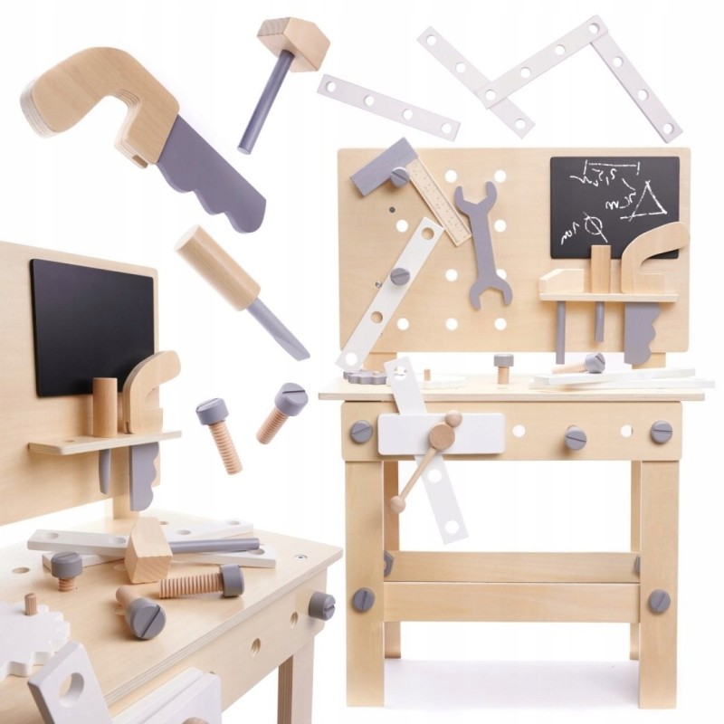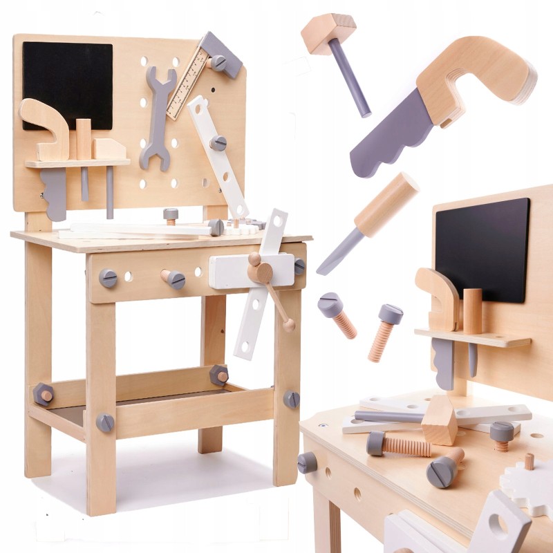 Warsztat jest propozycją wspaniałej, rozwijającej zabawy oraz genialnym pomysłem na prezent dla małego wielbiciela narzędzi.