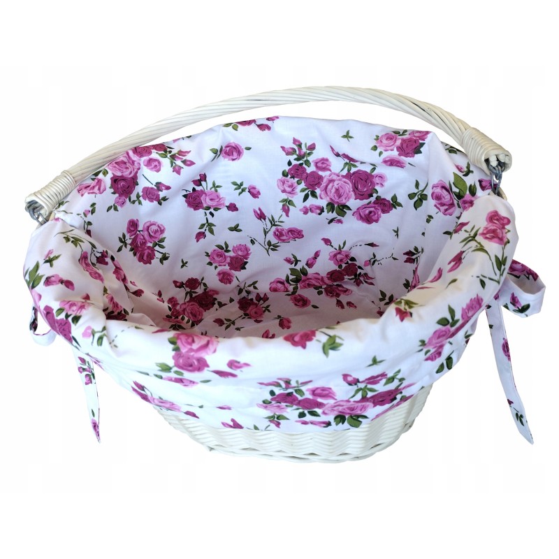 Przedstawiamy Państwu zestaw rowerowy: wiklinowy kosz z bawełnianą wkładką. Kosz został starannie spleciony i pomalowany, a wkładka uszyta przez nas z najwyższej jakości certyfikowanej bawełny.