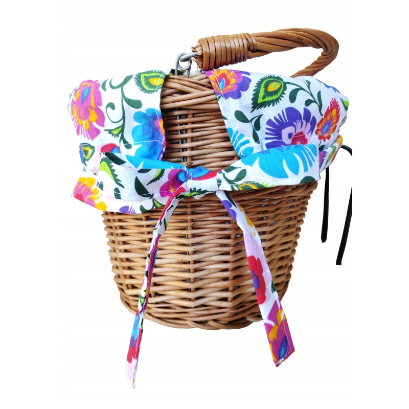 Kosz wiklinowy na rower to stylowy i funkcjonalny dodatek, który świetnie sprawdza się w codziennym użytkowaniu. Montowany z przodu roweru. Może być używany do transportu drobnych rzeczy, takich jak zakupy czy akcesoria rowerowe. Nasze kosze są wykonane z naturalnej wikliny, co nadaje im rustykalny, klasyczny wygląd. Są wyposażone w rączkę do łatwego przenoszenia, oraz uchwyt dzięki , któremu zamontujemy go na nasz ulubiony rower. Bawełniana wkładka uszyta przez nas dodaje koszykowi stylowego uroku i elegancji.