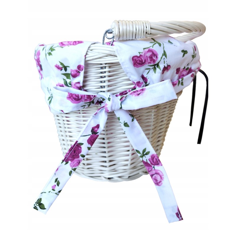 Przedstawiamy Państwu zestaw rowerowy: wiklinowy kosz z bawełnianą wkładką. Kosz został starannie spleciony i pomalowany, a wkładka uszyta przez nas z najwyższej jakości certyfikowanej bawełny.