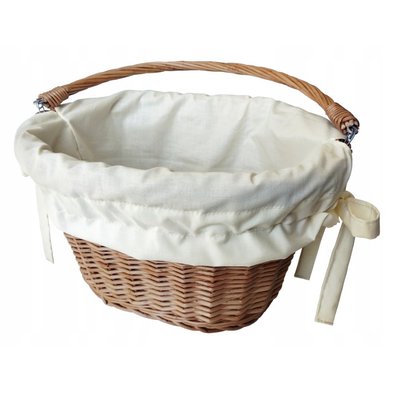 Przedstawiamy Państwu zestaw rowerowy: wiklinowy kosz z bawełnianą wkładką. Kosz został starannie spleciony i pomalowany, a wkładka uszyta przez nas z najwyższej jakości certyfikowanej bawełny.
