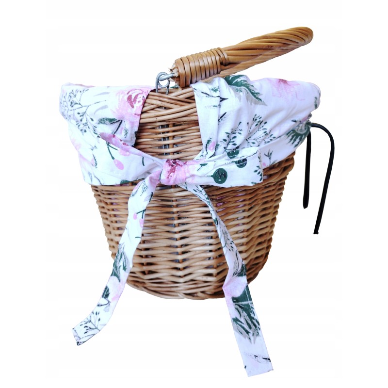 Przedstawiamy Państwu zestaw rowerowy: wiklinowy kosz z bawełnianą wkładką. Kosz został starannie spleciony i pomalowany, a wkładka uszyta przez nas z najwyższej jakości certyfikowanej bawełny.