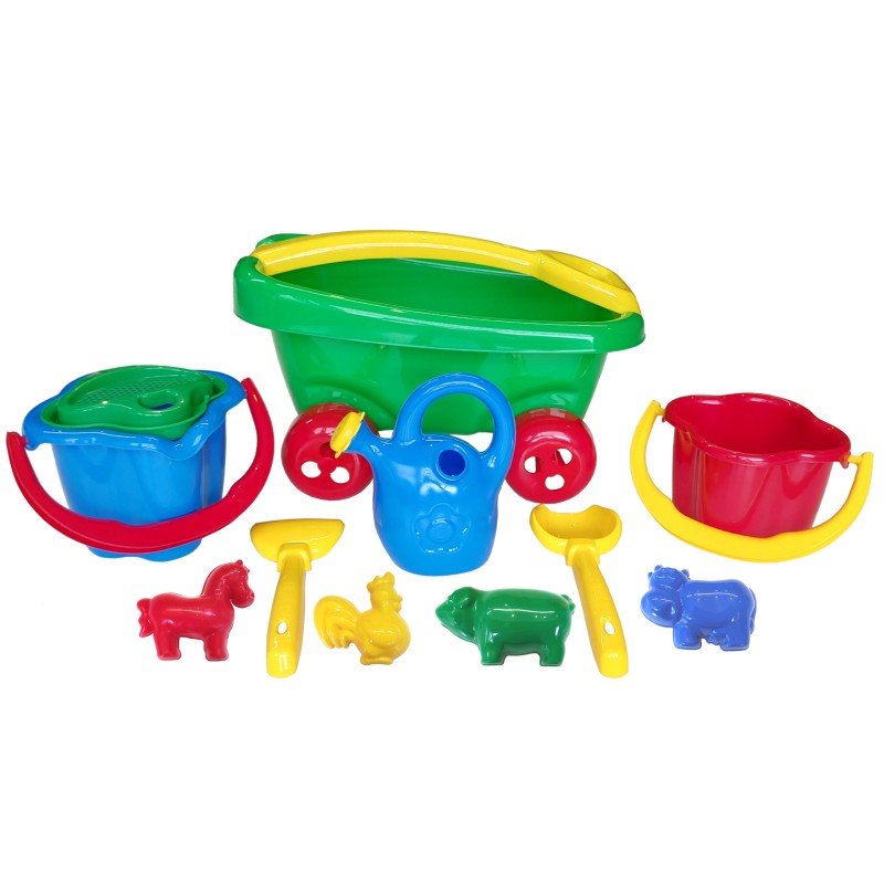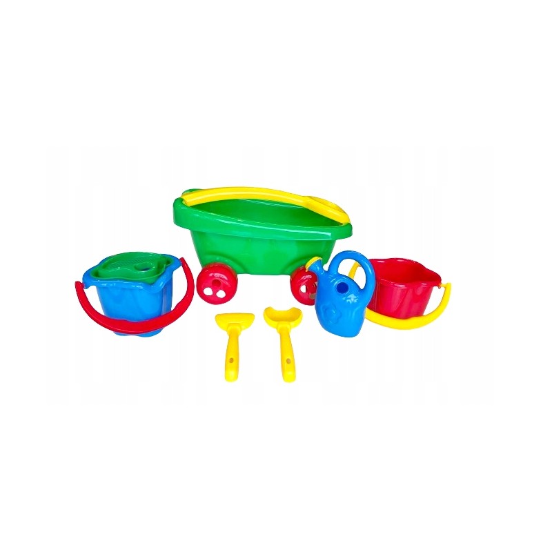 Przedstawiamy Państwu wózek do piasku z rączką do ciągnięcia - zestaw dla dzieci.