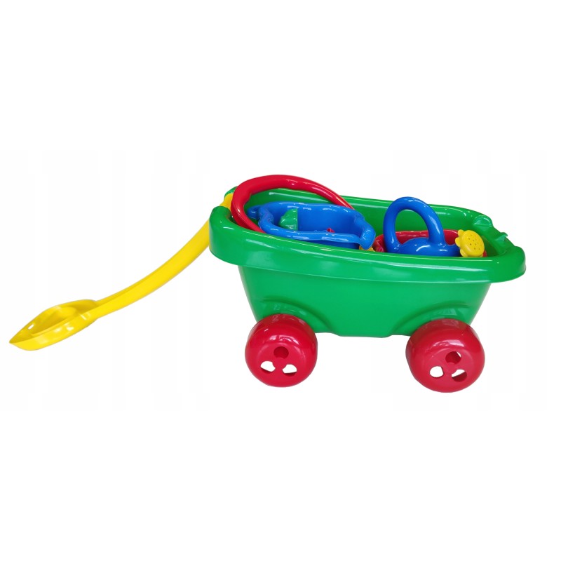 Idealny do zabawy w piaskownicy, ogrodzie czy na plaży - nasz wózek z rączką do ciągnięcia to must-have la małych odkrywców!