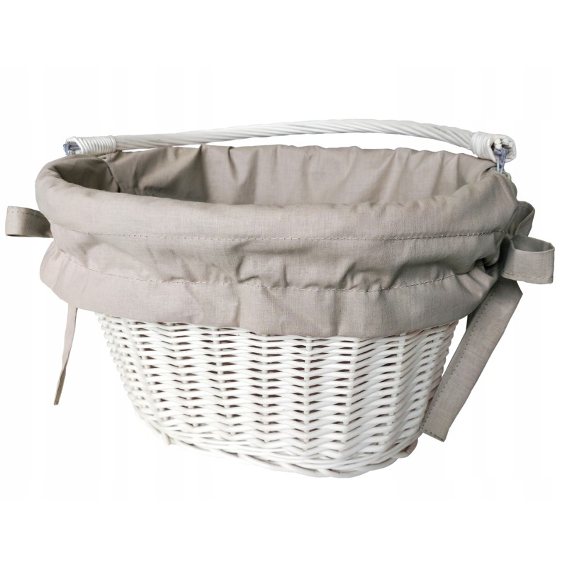 Przedstawiamy Państwu zestaw rowerowy: wiklinowy kosz z bawełnianą wkładką. Kosz został starannie spleciony i pomalowany, a wkładka uszyta przez nas z najwyższej jakości certyfikowanej bawełny.