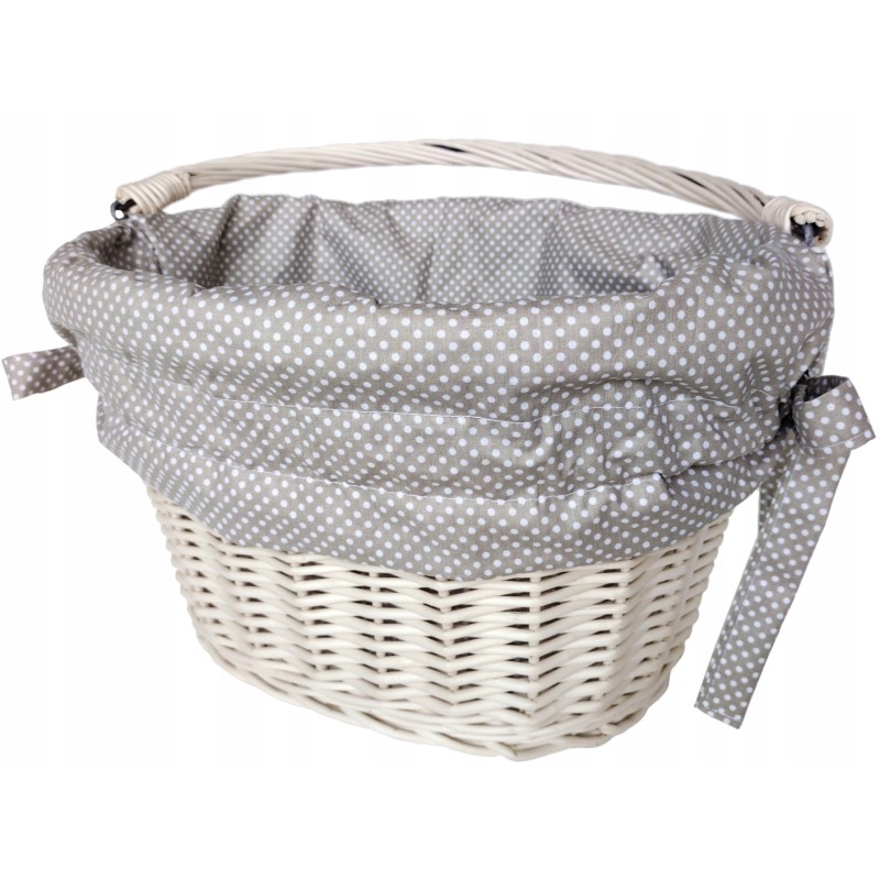 Przedstawiamy Państwu zestaw rowerowy: wiklinowy kosz z bawełnianą wkładką. Kosz został starannie spleciony i pomalowany, a wkładka uszyta przez nas z najwyższej jakości certyfikowanej bawełny.