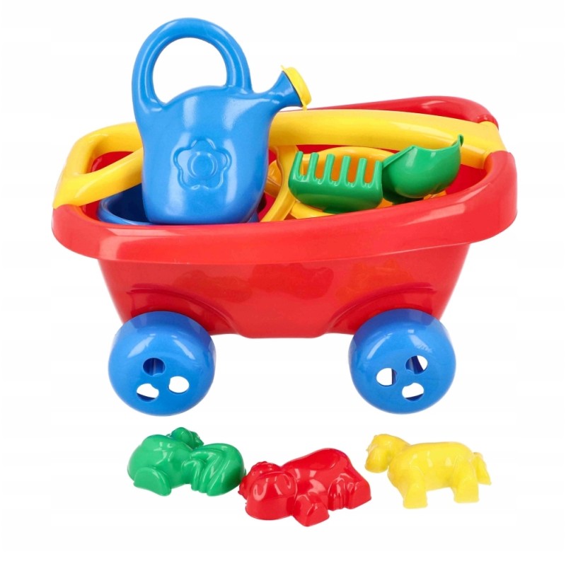 Idealny do zabawy w piaskownicy, ogrodzie czy na plaży - nasz wózek z rączką do ciągnięcia to must-have la małych odkrywców!