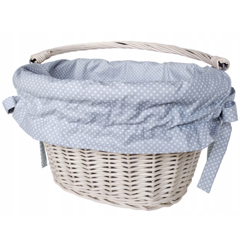Przedstawiamy Państwu zestaw rowerowy: wiklinowy kosz z bawełnianą wkładką. Kosz został starannie spleciony i pomalowany, a wkładka uszyta przez nas z najwyższej jakości certyfikowanej bawełny.