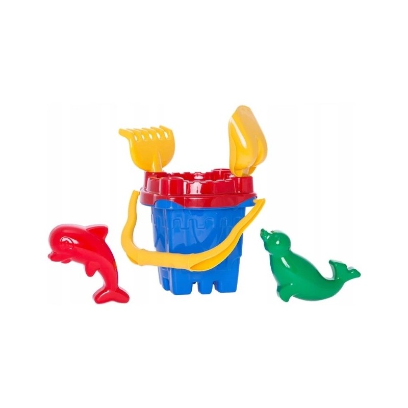 ⭐ Zestaw do piasku "Zamkowy Raj " - Wiaderko , Łopatka, Grabki + Foremki Delfinek i foczka ⭐