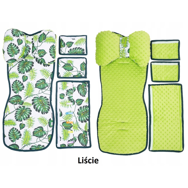 Dwustronna wkładka do wózka spacerowego wykonana z BAWEŁNY 100% w różnych wzorach i kolorach, z drugiej strony połączona z tkaniną MINKY Z BĄBELKAMI. W środku wypełniona mięciutkim ocieplaczem, można używać ją obustronnie.