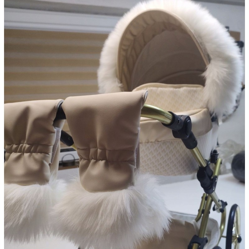 Mufki ochronne nie są ze sobą połączone. W parze każda sztuka jest niezależna od siebie. To jest duża zaleta, ponieważ nie ograniczają ruchów dłoni po rączkach wózka - co daje duży komfort prowadzenia. Mufki z zewnątrz wyprodukowane są z eko skóry, która jest wodoodporna i chroni ręce od wiatru i zimna.