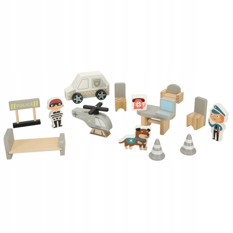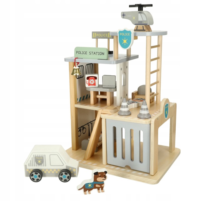 - posterunek policji oraz akcesoria są wykonane z wysokiej jakości drewna, aby