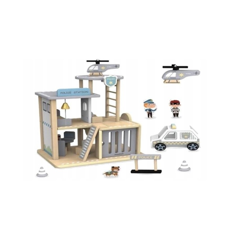 KOMISARIATPOLICJI DREWNIANY TOR + RADIOWÓZ HELIKOPTER PARKING