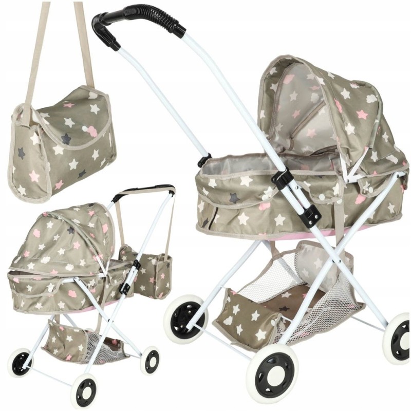 WÓZEK DLA LALEK GONDOLA + TORBA W GWIAZDKI