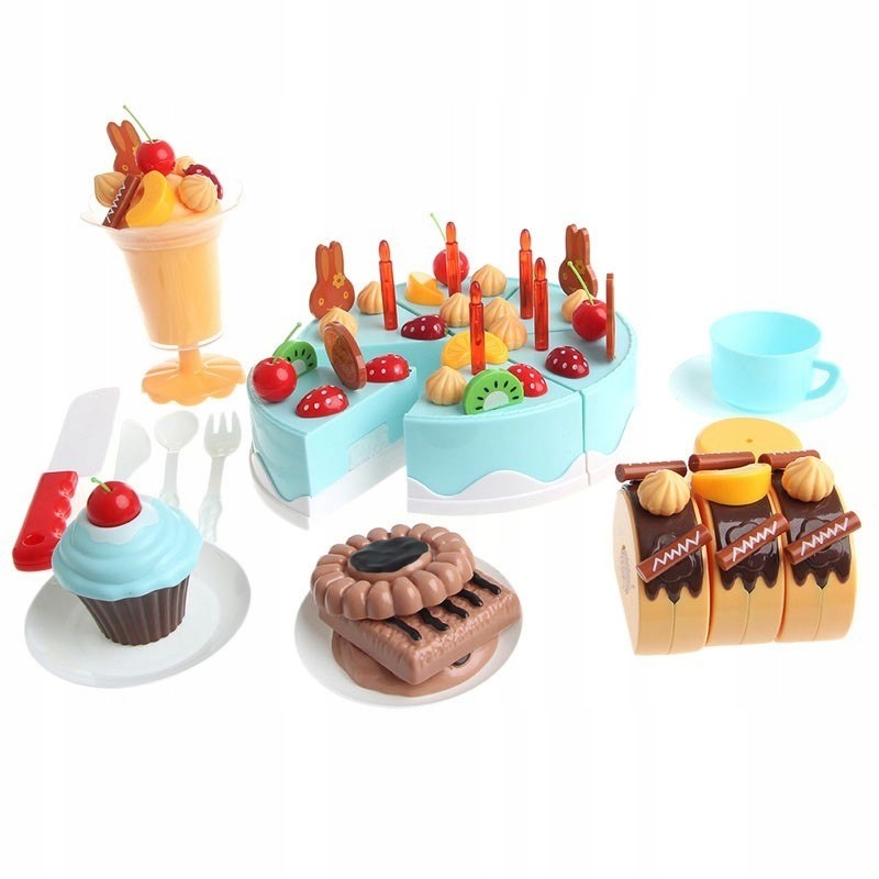 TORT URODZINOWY DO KROJENIA KUCHNIA NIEBIESKI 75 ELEMENTÓW