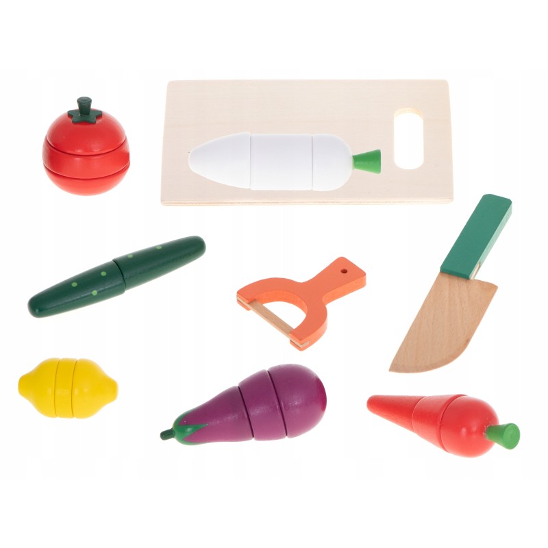 Kolorowe warzywa przyciągają wzrok i małe rączki… jak magnes! Oddzielone kawałki z łatwością połączysz w całość, gdyż części są wyposażone w magnesy.