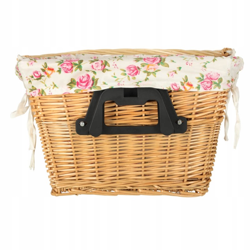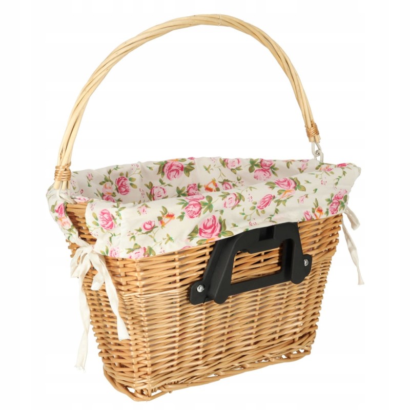 Kosz na rower z wiklinyprzyda się podczas każdej przejażdżki! Jest pojemny, dzięki czemu bez problemu umieścisz w nim torebkę, plecak, a nawet zakupy. Posiada materiałowy wkład w kwiatowy wzór.