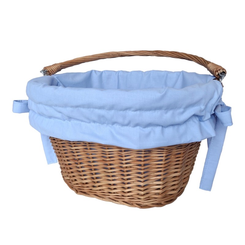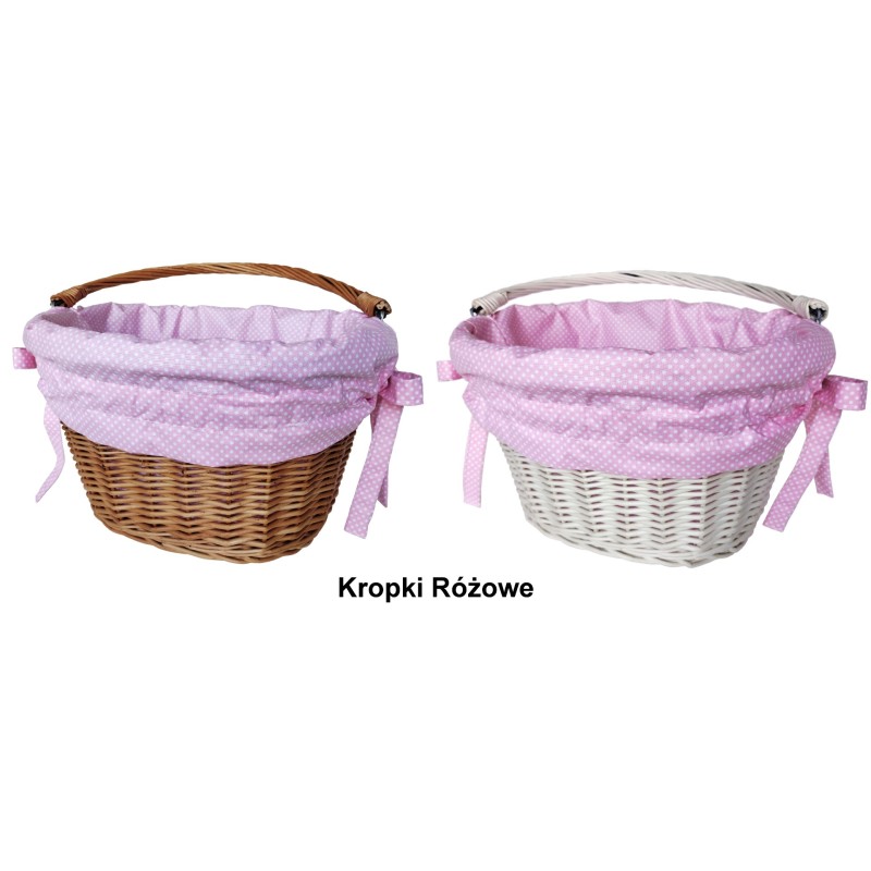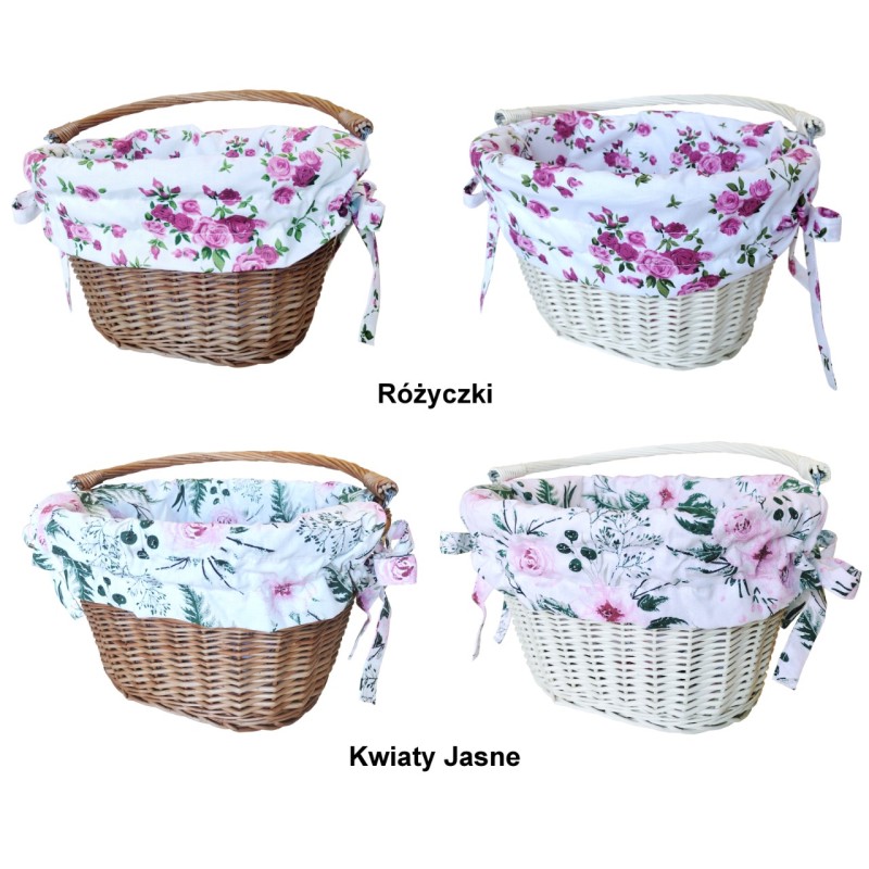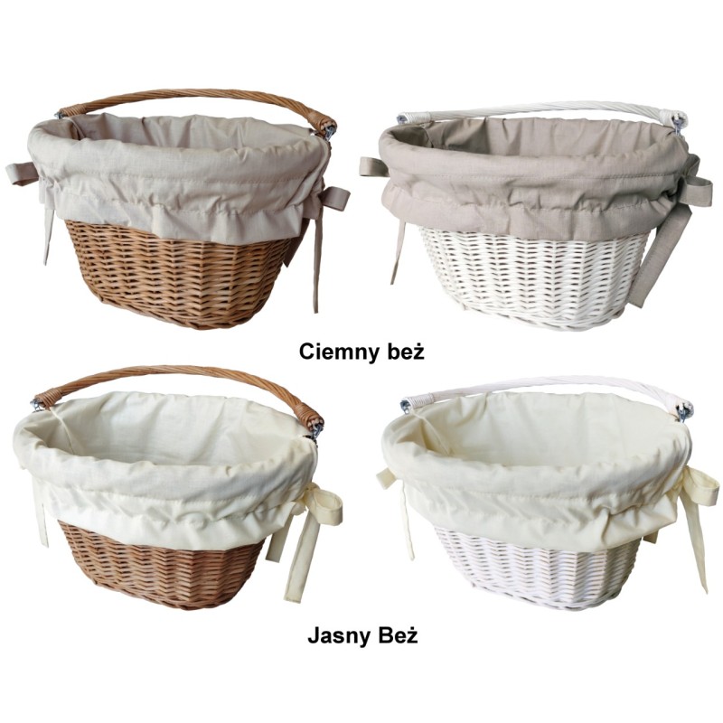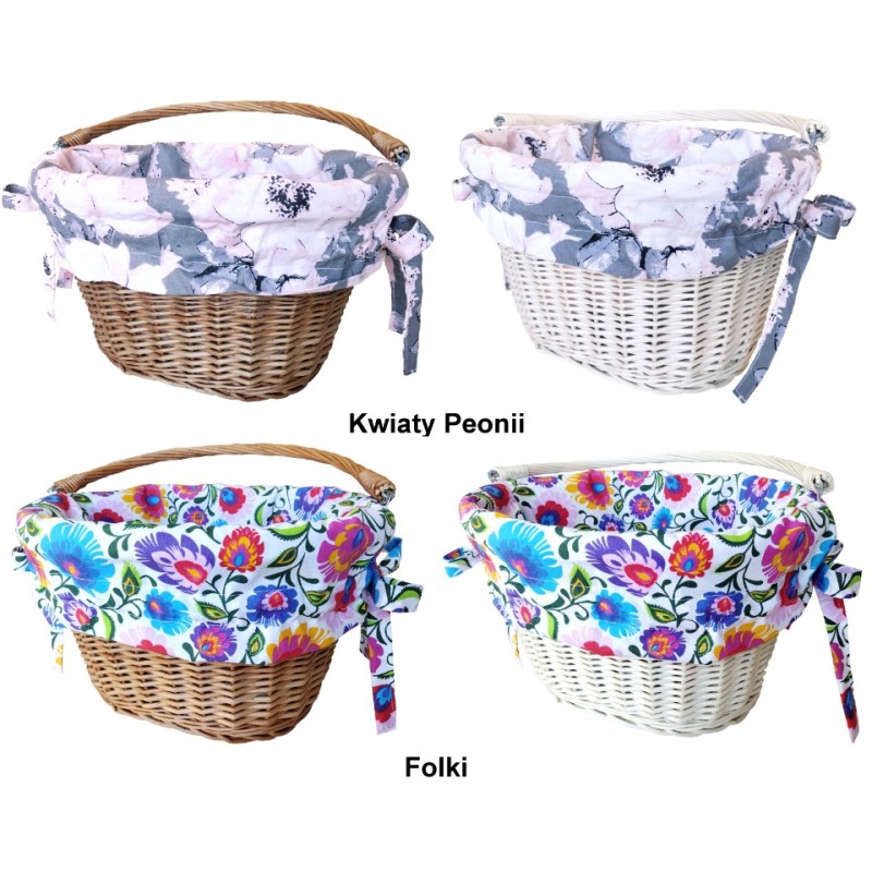 Kosz wiklinowy na rower to stylowy i funkcjonalny dodatek, który świetnie sprawdza się w codziennym użytkowaniu. Montowany z przodu roweru. Może być używany do transportu drobnych rzeczy, takich jak zakupy czy akcesoria rowerowe. Nasze kosze są wykonane z naturalnej wikliny, co nadaje im rustykalny, klasyczny wygląd. Bawełniana wkładka uszyta przez nas dodaje koszykowi stylowego uroku i elegancji.