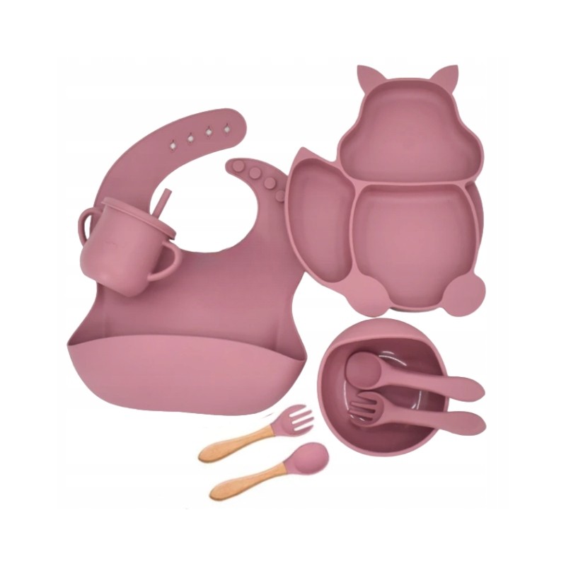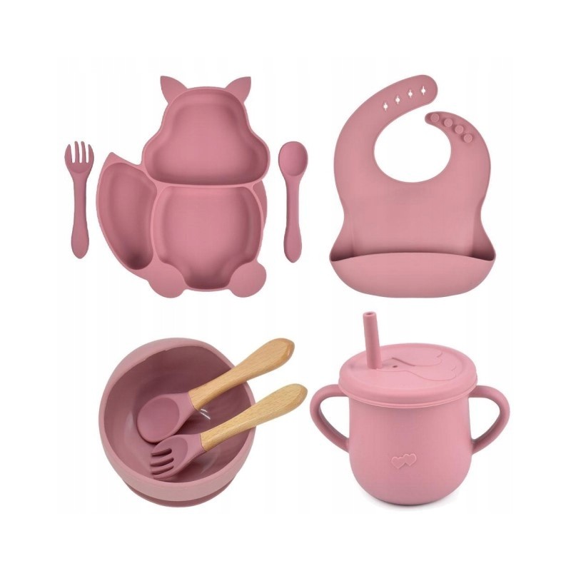 NACZYNIA SILIKONOWE DLA DZIECI WIEWIÓRKA ZESTAW 9 ELEMENTÓW CIEMNY RÓŻOWY