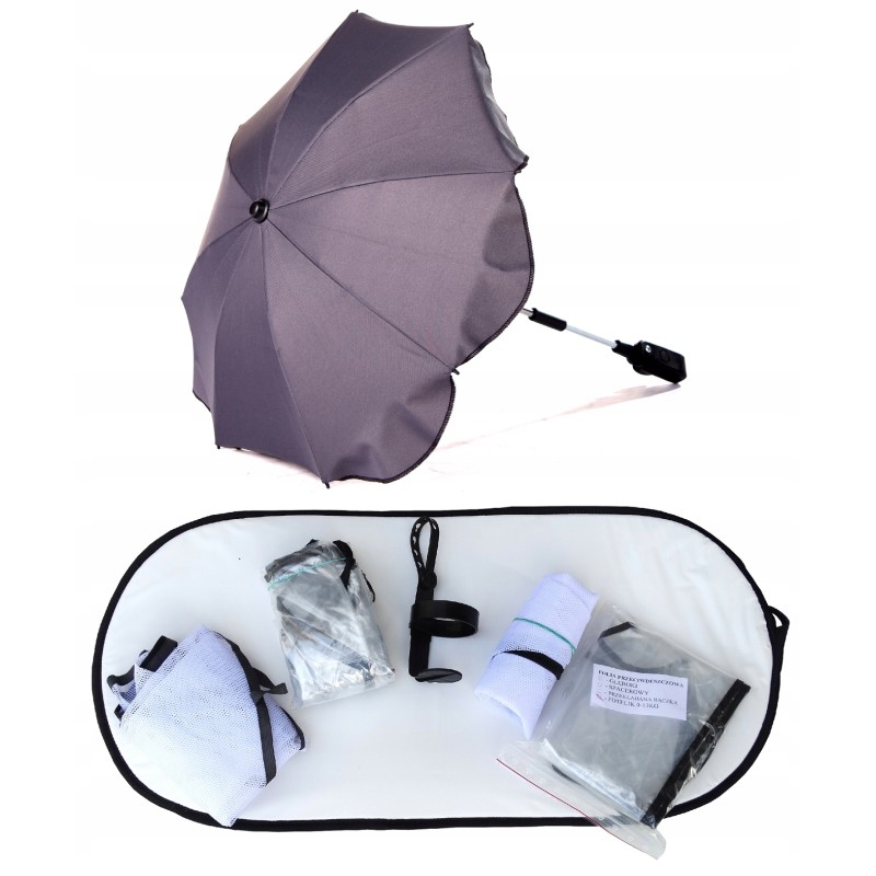 - Adaptery do fotelika|Folia przeciwdeszczowa|Mata do przewijania|Moskitiera|Osłona na nóżki|Parasolka|Torba do wózka|Uchwyt na kubek
