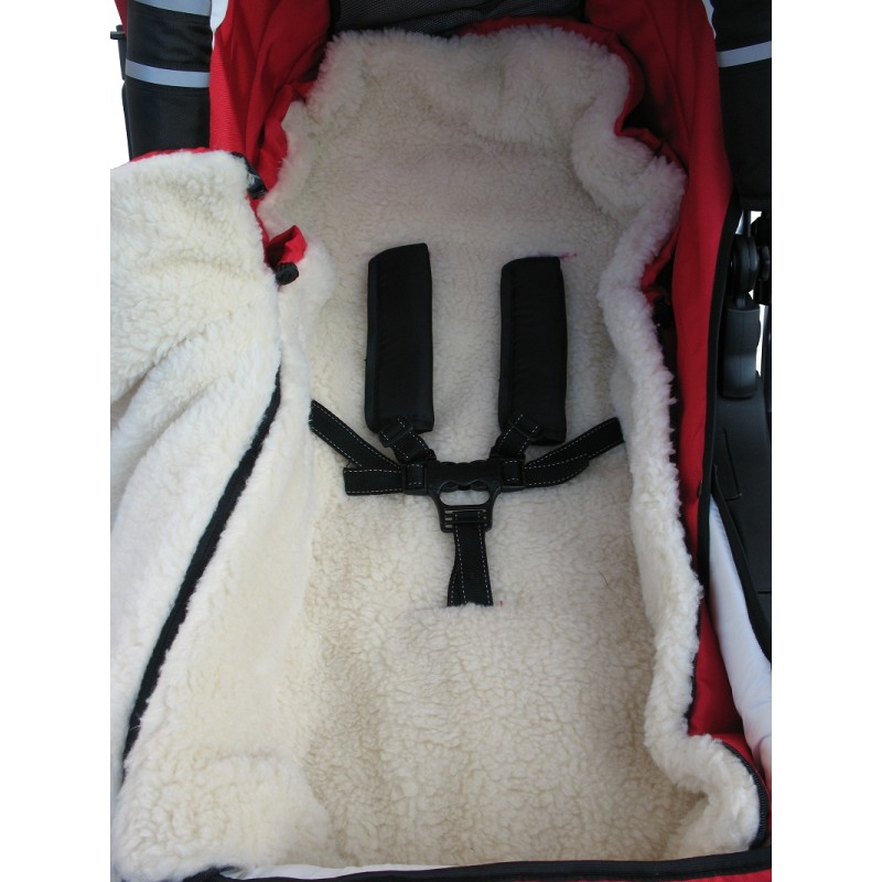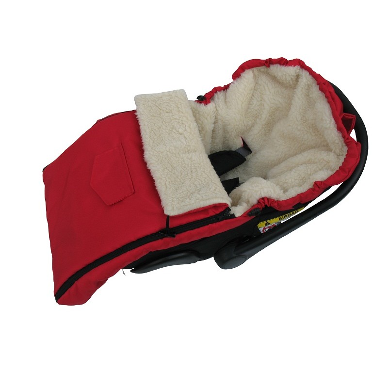 Śpiworek posiada otwory na pięciopunktowe pasy bezpieczeństwa, co umożliwia przypięcie dziecka pasami wózka lub fotelika.
