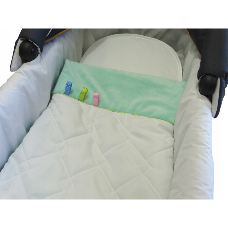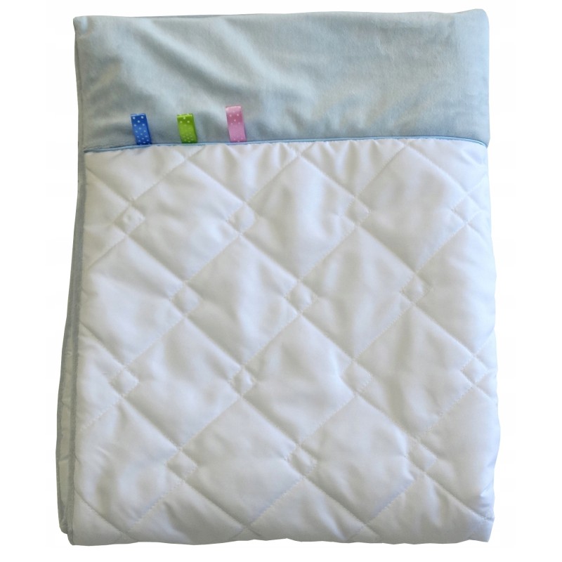 Dwustronny Kocyk wykonany jest z mięciutkiej pikowanej mikrofibry o gramaturze 100 i milutkiego gładkiego minki. Idealnie nadaje się do wózka , łóżeczka lub kołyski. Do kocyka zostały doszyte kolorowe tasiemki - sensorki, które pobudzają wyobraźnię, dotyk oraz inne instynkty rozpoznawcze dziecka.