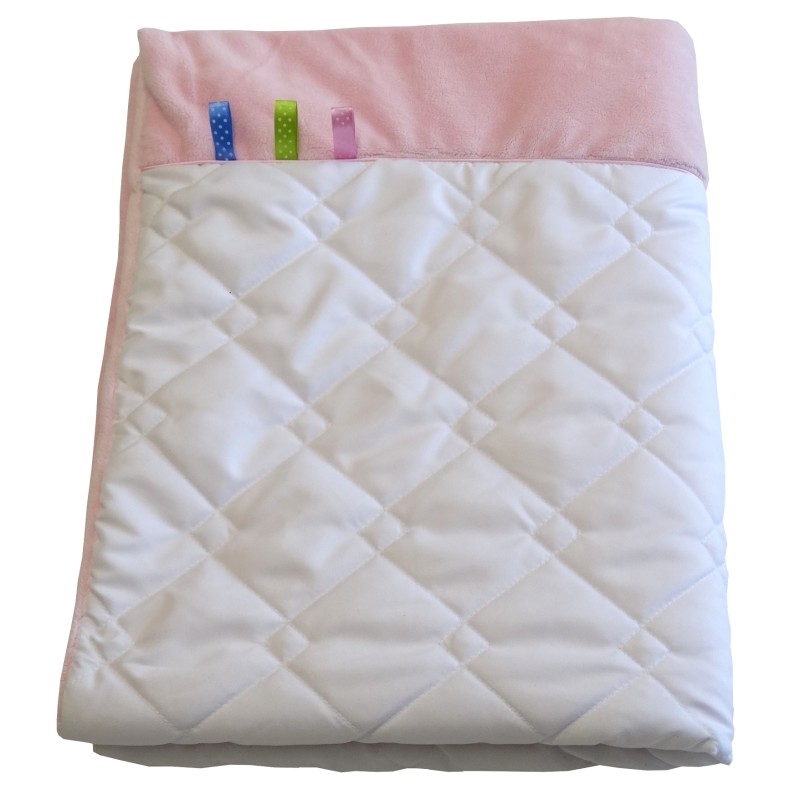 Dwustronny Kocyk wykonany jest z mięciutkiej pikowanej mikrofibry o gramaturze 100 i milutkiego gładkiego minki. Idealnie nadaje się do wózka , łóżeczka lub kołyski. Do kocyka zostały doszyte kolorowe tasiemki - sensorki, które pobudzają wyobraźnię, dotyk oraz inne instynkty rozpoznawcze dziecka.