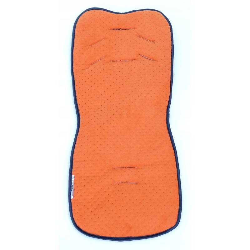 Dwustronna wkładka do wózka spacerowego wykonana z materiału NUBUK w różnych kolorach, z drugiej strony połączona z tkaniną MINKY. W środku wypełniona gąbką, można używać ją obustronnie. Materiał NUBUK jest bardzo dobrym materiałem, mocnym, wytrzymałym, swobodnie oddycha i przepuszcza powietrze, jest miękki i bardzo miły w dotyku. Materiał ten jest również używany w przemyśle samochodowym do tapicerek oraz foteli ale również w przemyśle meblarskim.