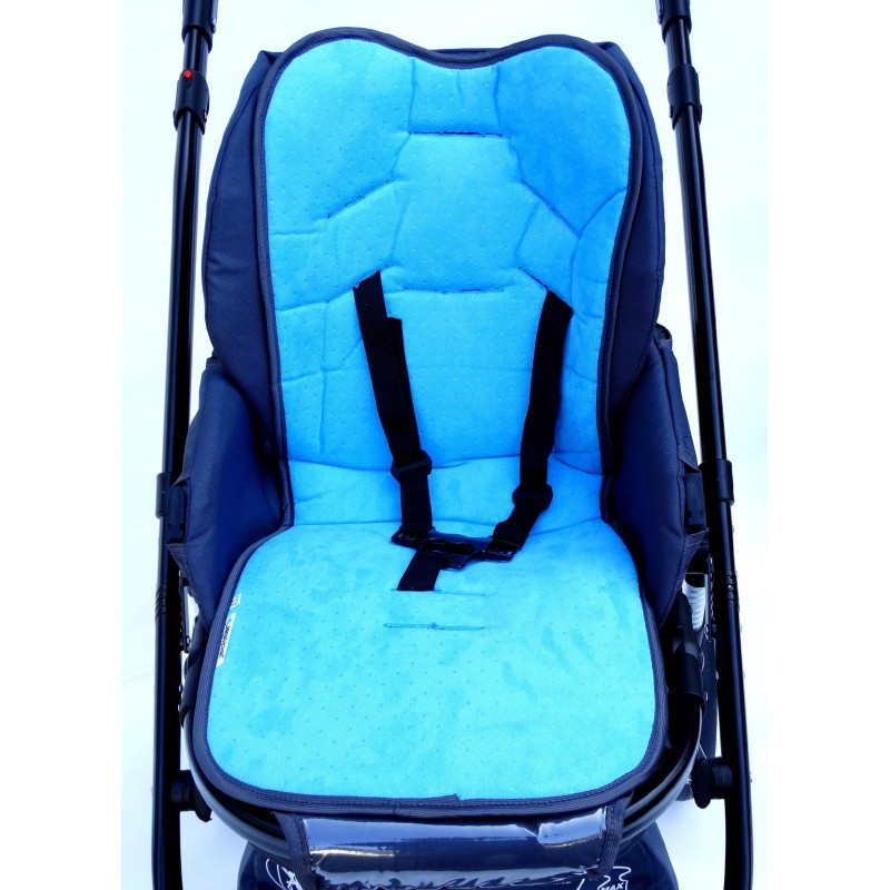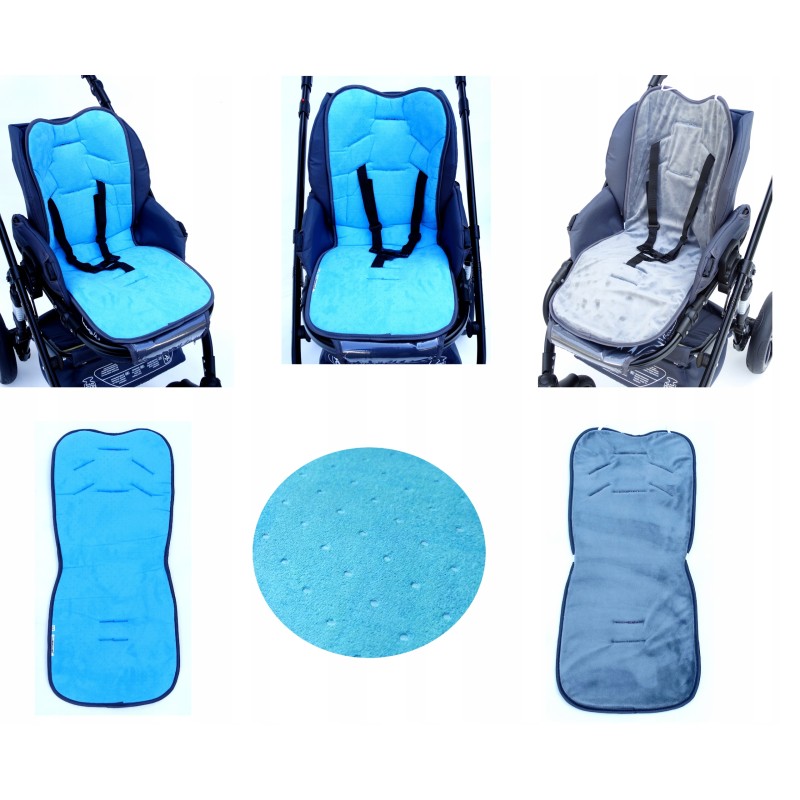 Dwustronna wkładka do wózka spacerowego wykonana z materiału NUBUK w różnych kolorach, z drugiej strony połączona z tkaniną MINKY. W środku wypełniona gąbką, można używać ją obustronnie. Materiał NUBUK jest bardzo dobrym materiałem, mocnym, wytrzymałym, swobodnie oddycha i przepuszcza powietrze, jest miękki i bardzo miły w dotyku. Materiał ten jest również używany w przemyśle samochodowym do tapicerek oraz foteli ale również w przemyśle meblarskim.