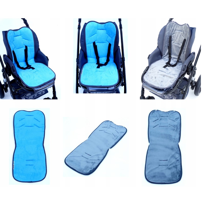 Każda wkładka ma wszytą gumę dzięki której możemy przymocować ją do stelaża wózka lub siedzonka aby uniknąć przesuwania się po siedzisku.