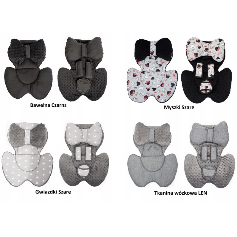 ☑️ Dwustronna wkładka do fotelika Grupy 0+ (0-13kg) wykonana z bawełny 100% w różnych wzorach i kolorach oraz jeden kolor wykonany z tkaniny wózkowej typu LEN, z drugiej strony połączona z tkaniną Minky z bąbelkami. W środku wypełniona mięciutkim ocieplaczem, można używać ją obustronnie.
